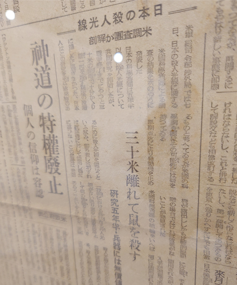 言論統制が解除され、戦時中書けなかった真相を明らかにした記事もみられました。米軍レーダーの餌食となり戦死した大佐が、生前遅々として進まぬ日本軍のレーダー配備に怒りをあらわにしていたことや、陸軍研究所で「殺人光線」の研究が行われていたもののネズミ1匹を殺す程度の成果しかなかったことなどが紹介されています。